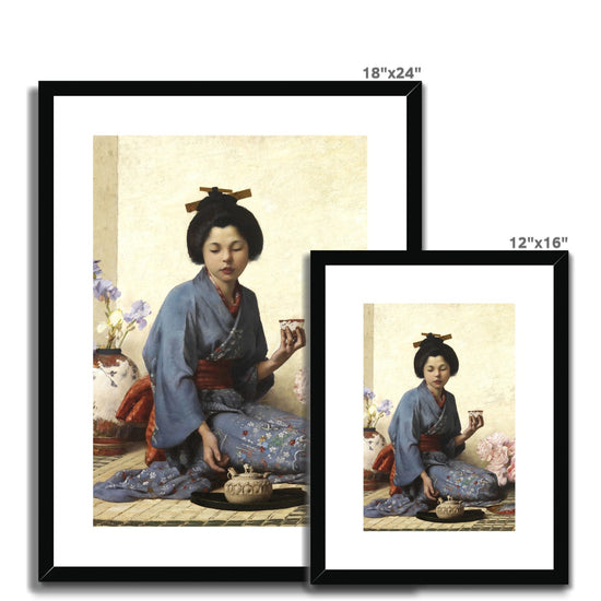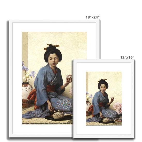 „Eine Tasse Tee“ (1883) von Charles Sprague Pearce zeigt die kultivierte und gelassene Darstellung einer Japanerin in einem reich verzierten blauen Kimono, die anmutig sitzt und eine Teeschale hält. Die Komposition fängt einen intimen Moment des kulturellen Rituals des Teetrinkens ein und strahlt Ruhe und stille Eleganz aus. Sanftes, naturalistisches Licht hebt die Texturen des Stoffes, die floralen Muster und ihren gelassenen Ausdruck hervor. Das harmonische Arrangement von Blumen, Keramik und subtilen Details spiegelt Pearces Gespür für kulturellen Kontext und ästhetische Schönheit wider und verdeutlicht den Einfluss des Japonismus in der westlichen Kunst des 19. Jahrhunderts.