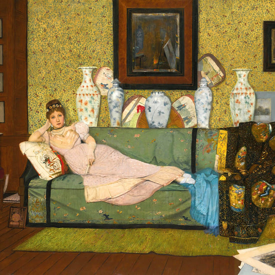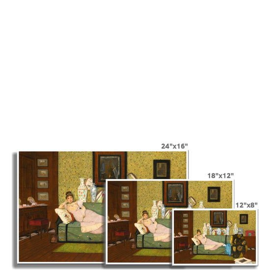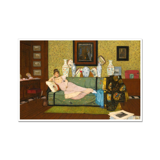 Dieser Kunstdruck von John Atkinson Grimshaws „A Reverie, In The Artist's House“ aus dem Jahr 1878 strahlt eine beruhigende, friedliche Atmosphäre aus. Er verleiht jedem Dekor einen Hauch von Ruhe.