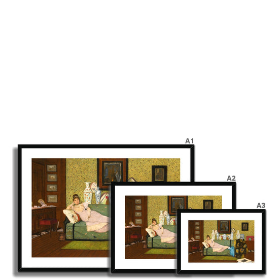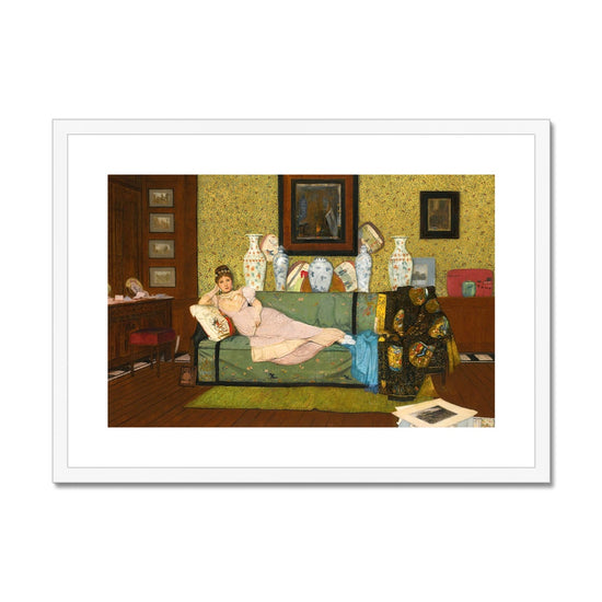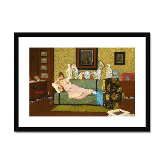 „A Reverie, In The Artist's House“ zeigt eine friedliche Szene aus dem Jahr 1878, gemalt von John Atkinson Grimshaw. Präsentiert in einem klassischen, schwarzen oder weißen Rahmen und montiert, um die Zartheit des Kunstwerks zu bewahren, bringt diese Szene Ruhe in jeden Raum.