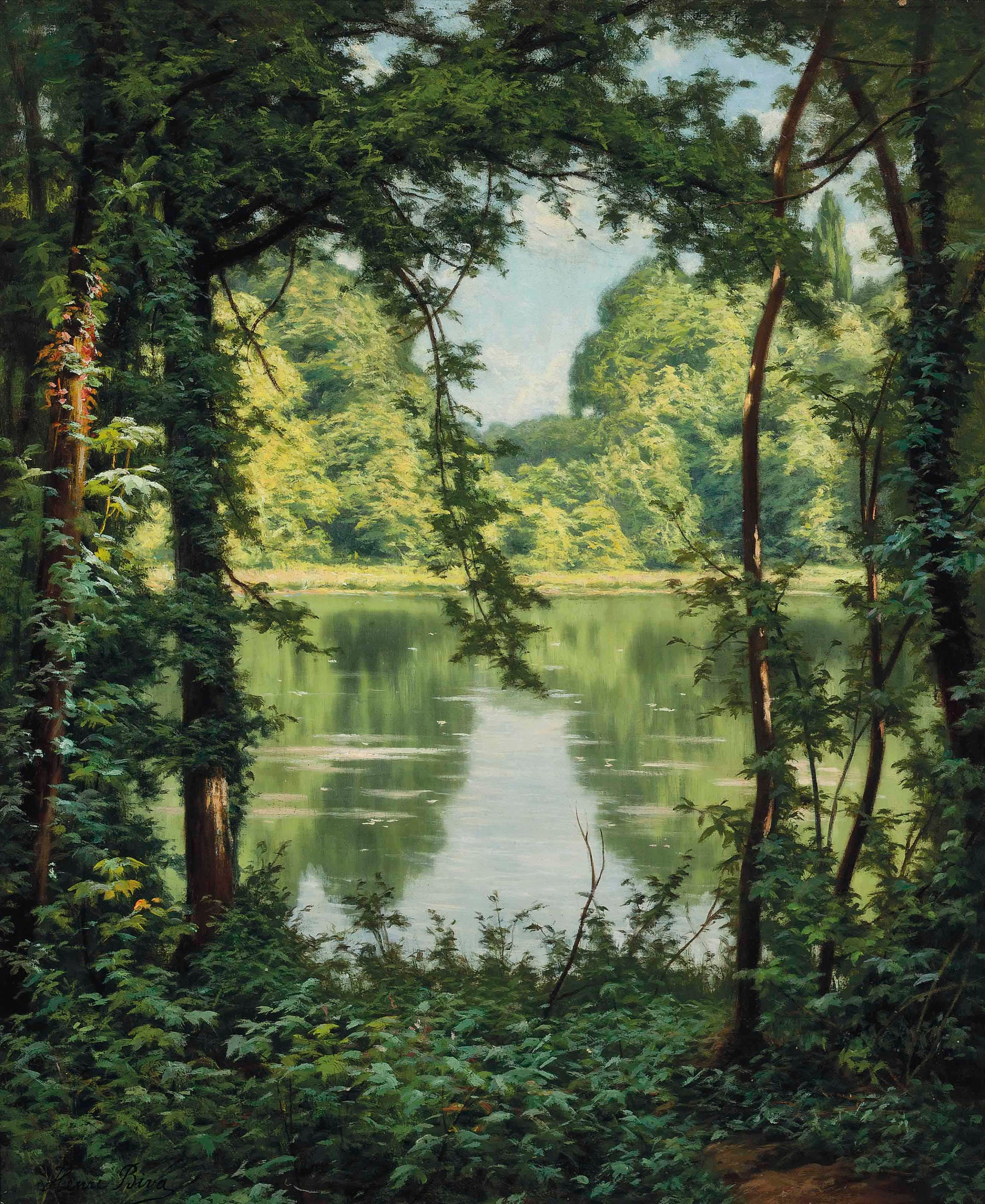 Dieser Kunstdruck „Woodland Lake“ von Henri Biva aus dem 19. Jahrhundert zeigt einen ruhigen See, umgeben von Bäumen und einer Bergkulisse. Der hochwertige Giclée-Druck fängt jedes Detail dieser friedlichen Szene ein. Holen Sie sich die Schönheit der Natur in Ihr Zuhause.