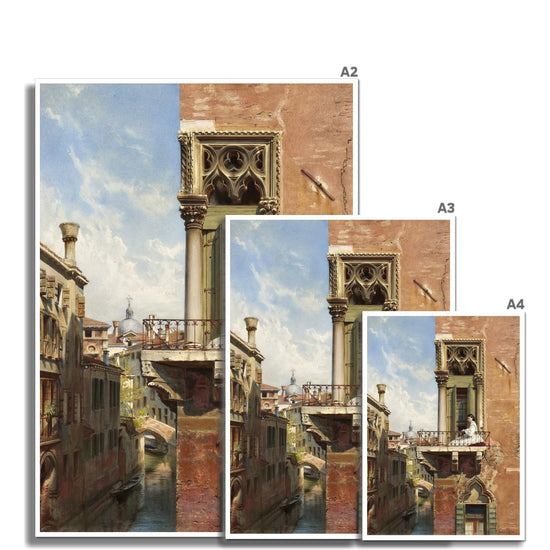 Cette magnifique estampe d'art de 1866 capture l'instant où Anna Passini se tient sur un balcon à Venise. Imprimée avec un souci du détail, elle deviendra assurément un ajout intemporel à votre maison ou à votre bureau.