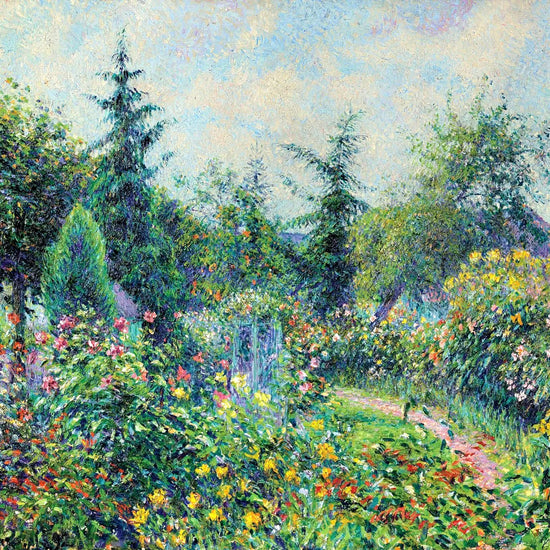 Painted in 1892, "Garden and Henhouse at Octave Mirbeau’s" is a luminous example of Camille Pissarro’s mature Impressionist style. The composition depicts a lush, overgrown garden path alive with dense foliage and flowering plants, rendered in vibrant, broken brushstrokes that capture the shifting effects of light and color. Pissarro transforms this quiet corner of rural life into a richly textured, atmospheric scene, where nature seems to vibrate with warmth, movement, and tranquil vitality.