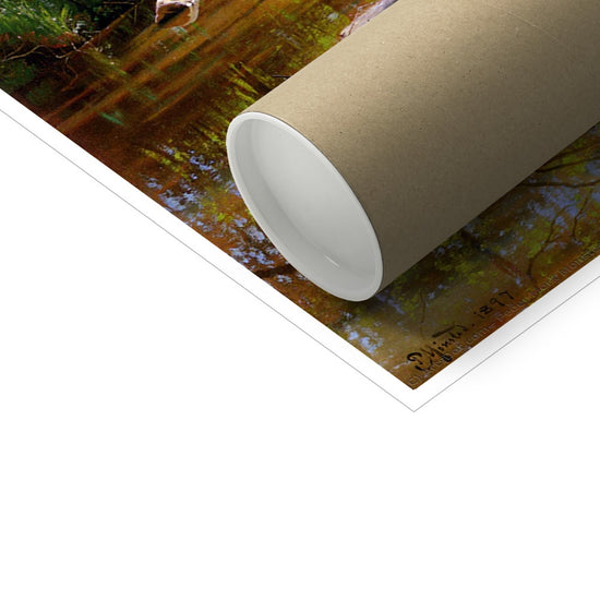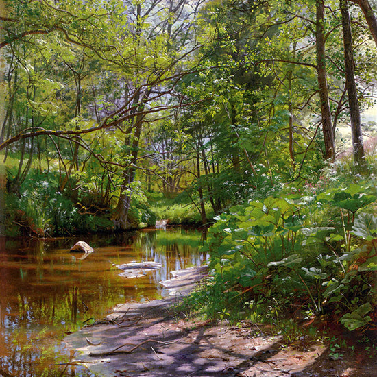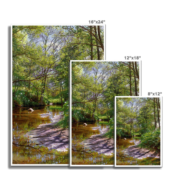 This 20th century fine art print captures a tranquil river landscape, painted by renowned artist Peder Mørk Mønsted. Its peaceful woodland setting and delicate brushstrokes bring a unique sense of serenity to any home.