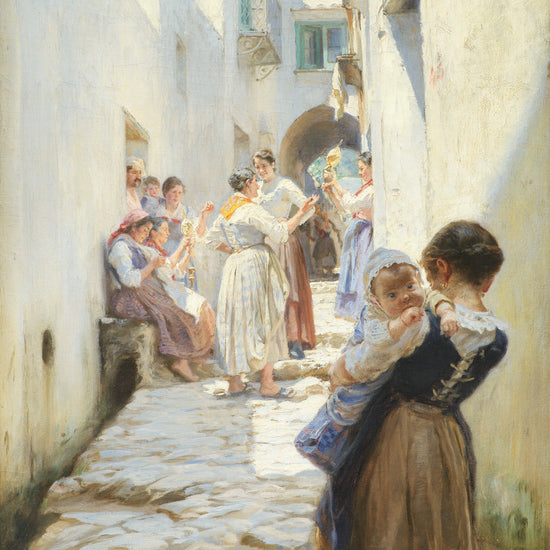 This fine art print by Peder Severin Krøyer is a peaceful scene of a street in Torello, Italy from 1890. It captures the beauty of the moment with bright colors and intricate details. Hang it in your home to bring a piece of Italian history into your life.
