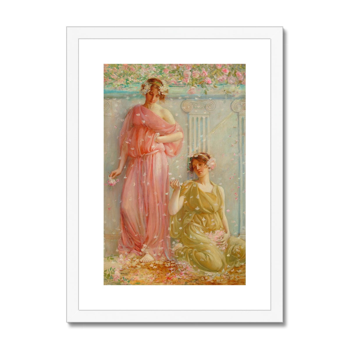 This 1898 painting by Charles Louis Hinton captures a tranquil summer shower, featuring two young women perched on a rock ledge. The serene setting is perfect for any room, adding a peaceful energy to any décor.