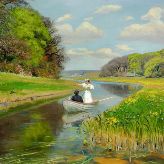 This beautiful, finely printed art piece, "Young Couple in a Rowing Boat" by H.A. Brendekilde, is a timeless classic from 1896. This print brings an exquisite touch of charm and nostalgia to any room.