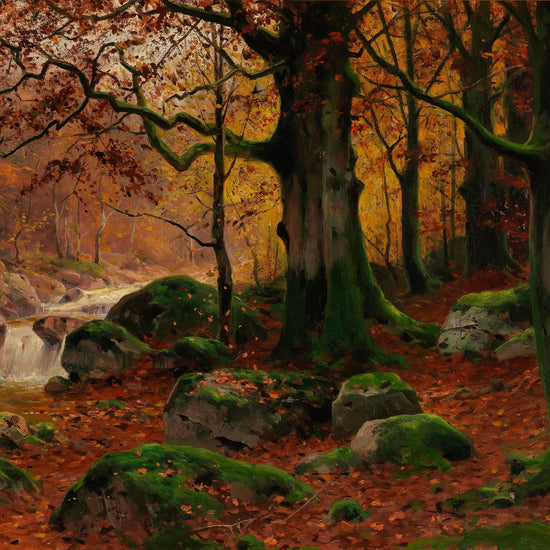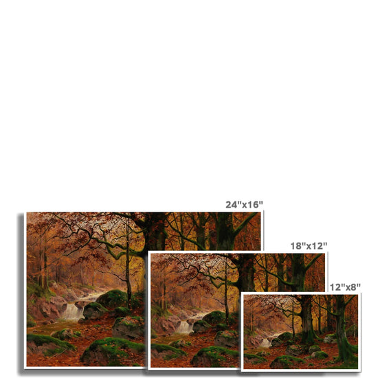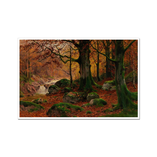 This beautiful 19th century fine art print by Walter Moras features a majestic autumn forest landscape. With its vibrant colors and detailed brushwork, it will become a standout piece in any home.