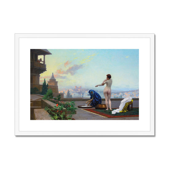 This framed and mounted print is a stunning reproduction of 1899's "Bathsheba" by Jean-Léon Gérôme. Featuring a peaceful scene of a nude lady, it adds a graceful touch to any room. Made with high-quality materials, this timeless classic will remain vibrant for years to come.