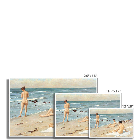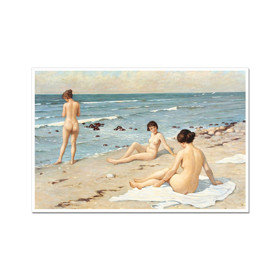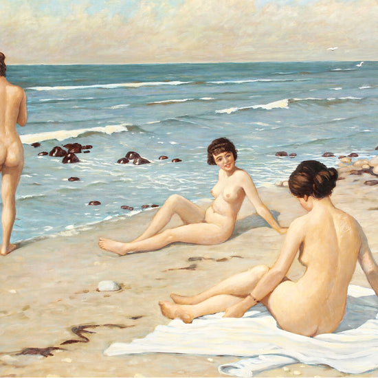 This fine art print of Paul Gustav Fischer's "Beach Party with Bathing Women" captures a delightful moment at a beach party in the early 20th century. Its tranquil depiction of nude women enjoying a peaceful day on the beach makes it an idyllic choice for any art collection.