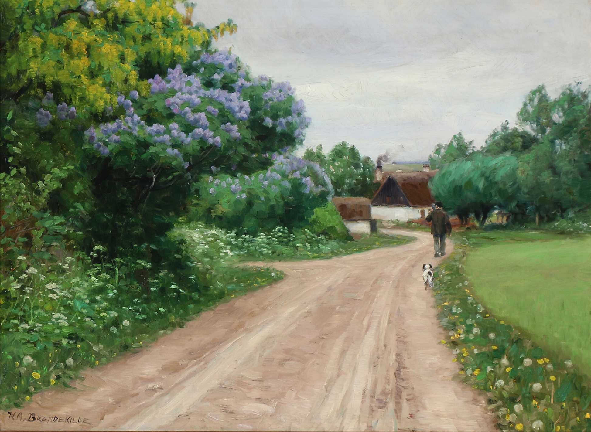 Let your living space be instantly enriched by this stunning 19th Century fine art print. Featuring the evocative work of renowned artist H. A. Brendekilde, this print of a tranquil Country Road will transport you to a simpler time. Add timeless beauty to your home today.
