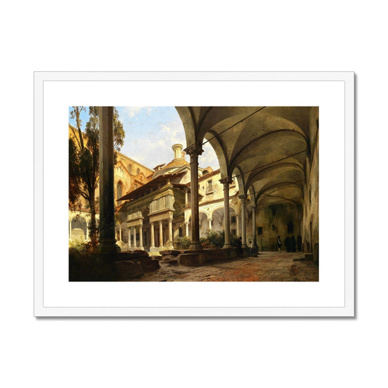 This framed and mounted print, "Courtyard of The Pazzi Chapel," captures the exquisite details and historic charm of the Florence landmark. Expertly crafted by artist Carl Graeb in 1858, this print showcases the courtyard's elegant architecture and serene atmosphere. A must-have for art lovers and history enthusiasts.