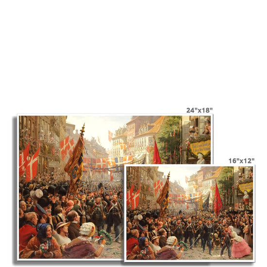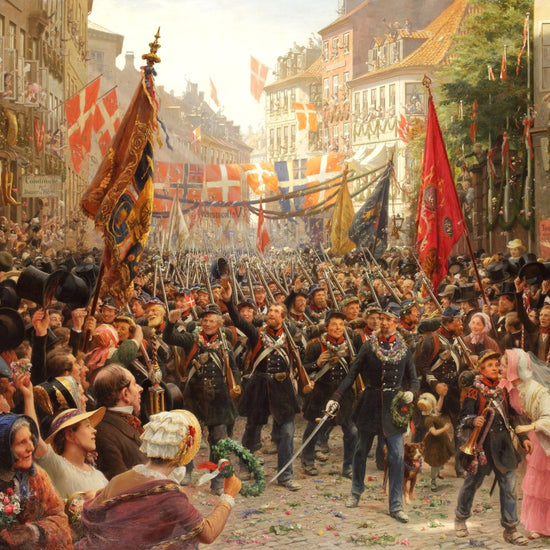 Otto Bache's 1849 painting, "Danish Soldiers Returning to Copenhagen," captures a scene of joyous celebration as Danish soldiers arrive home from battle. The painting captures the hope of returning home and the happiness of the soldiers reuniting with their families.