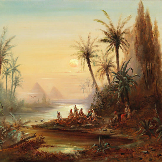 This fine art print by Albert Rieger features an evocative scene of the evening Nile. Printed on high-quality cardstock, this timeless image is a perfect addition to any home.