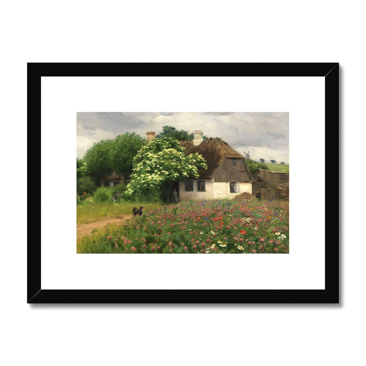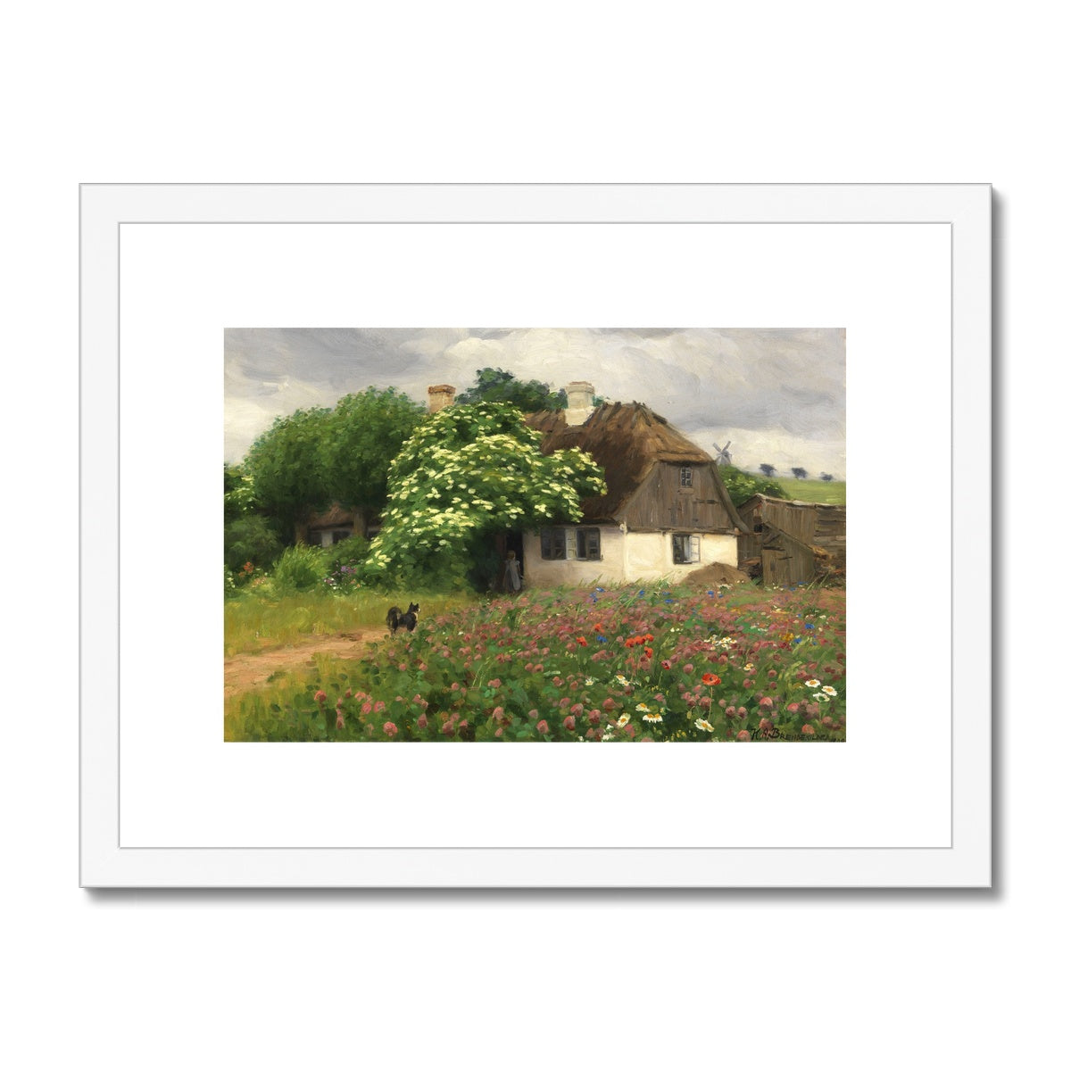 Bring a piece of history into your home with this beautiful Farmhouse with Meadow Flowers by H. A. Brendekilde, originally created in 1909. Our framed and mounted prints make the perfect addition to any wall, bringing this classic artwork to life.