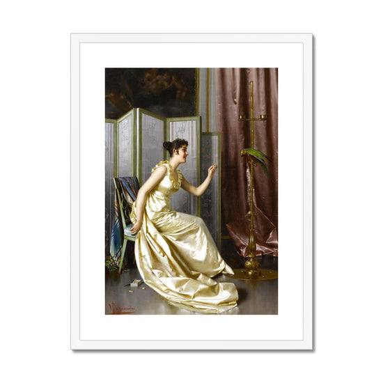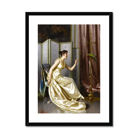 "Feeding the Parrot" by Vittorio Reggianini is a delightful framed print, perfect for adding a touch of 19th-century charm to any home. This piece's vibrant colours and cozy atmosphere will bring a sense of warmth and comfort to any space.