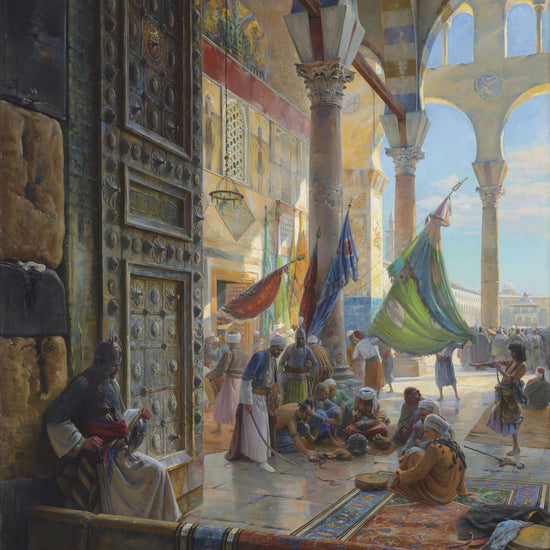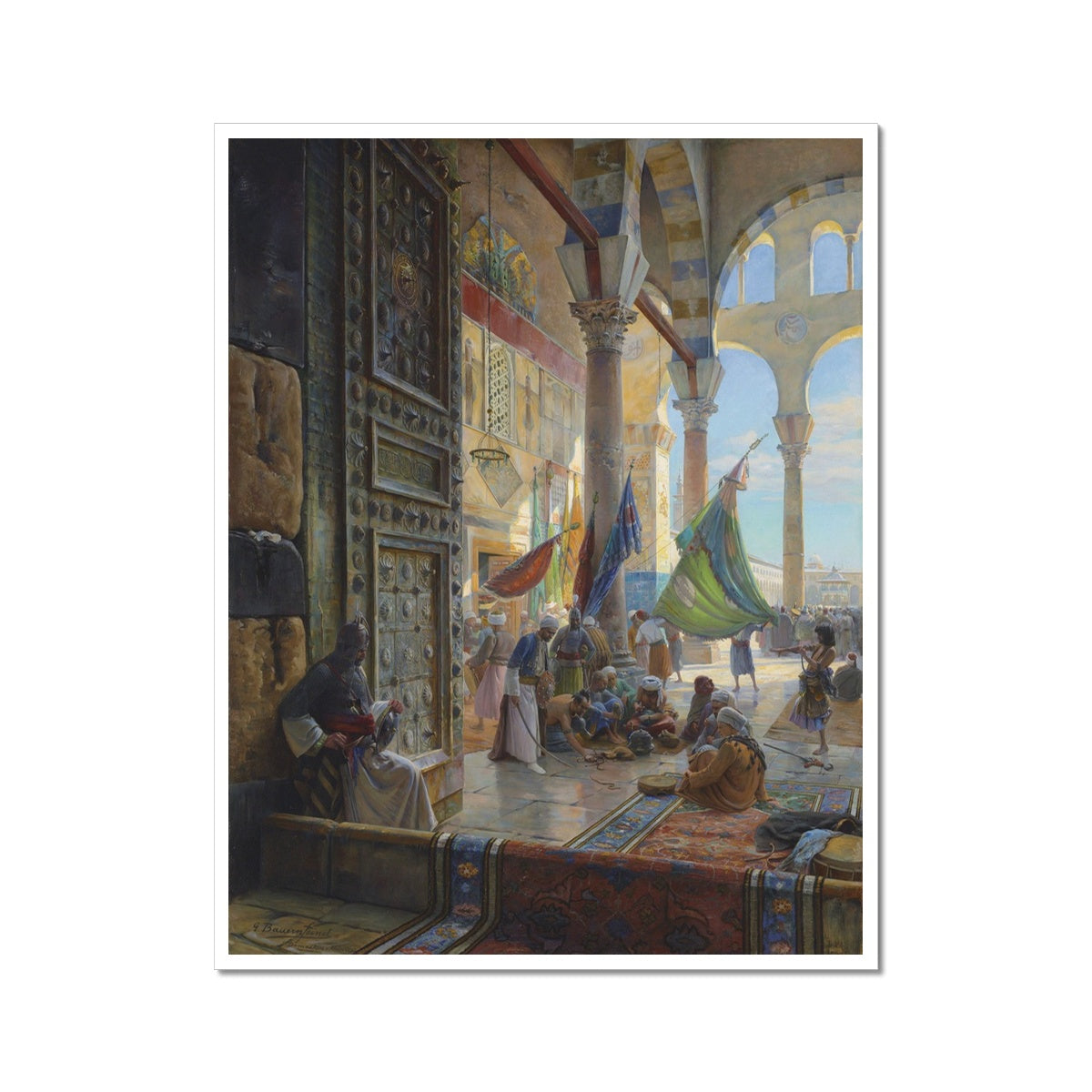 Gustav Bauernfeind's 1890 print, “Forecourt of the Umayyad Mosque, Damascus”, captures the peaceful atmosphere of the mosque's forecourt in a beautifully rendered scene. Take home a timeless art piece with this fine art print.