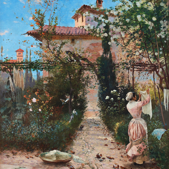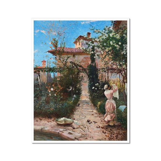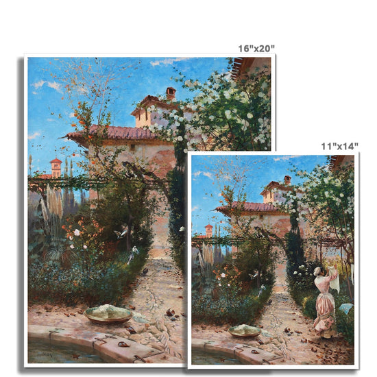 This beautiful 1885 fine art print by artist Hugo Birger captures a tranquil scene in Alhambra with exquisite detail and subtle tones. Bring an air of peace into your home with this amazing print.