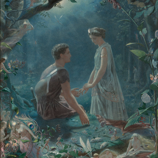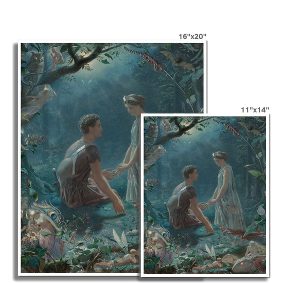 Hermia and Lysander from A Midsummer Night's Dream, a fine art print by John Simmons, is a timeless piece of art featuring beautiful, detailed illustrations. Perfect for any collector or admirer of classic literature.
