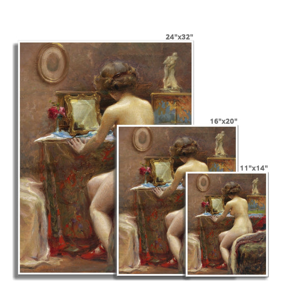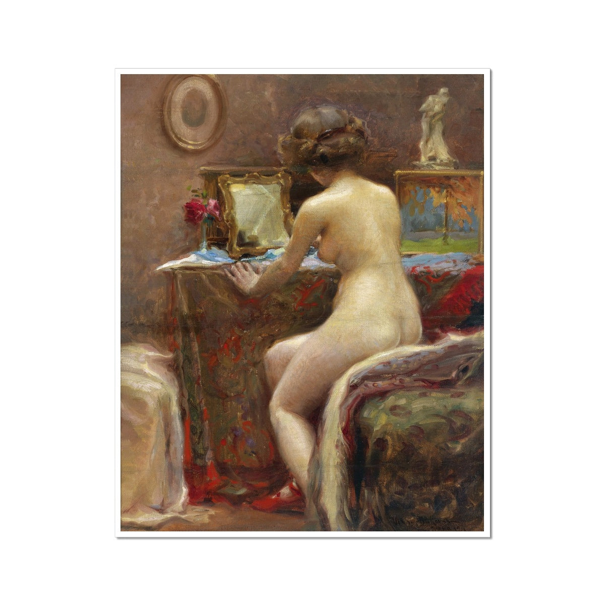 This beautiful Fine Art Print of Vlaho Bukovac's 'In Front of the Toilet Mirror' from 1914 is a tranquil depiction of a peaceful nude female. With subtle hues and lines, it is the perfect addition to any home or office.