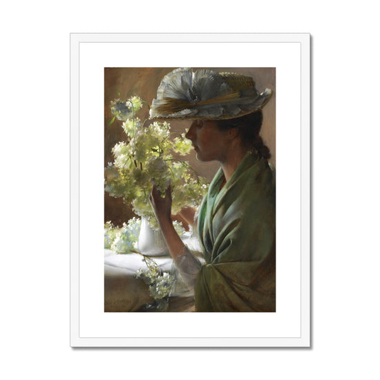 The "Lady with a Bouquet" art print by Charles Courtney Curran captures a timeless, peaceful moment. Featuring a woman enjoying a bouquet of flowers, this 1890 masterpiece celebrates nature's beauty. Enjoy a classic fine art print in your home.
