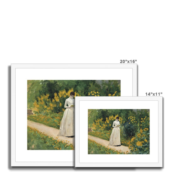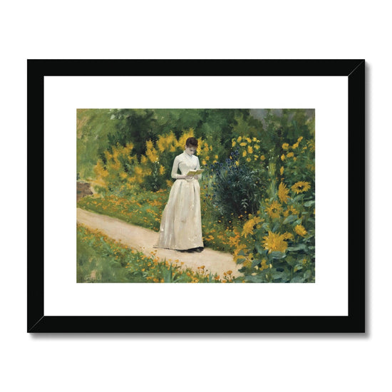 Deck your walls with this classic framed and mounted print of Albert Aublet's "Reading on the Garden Path" from 1883. Immerse yourself in the idyllic magic and nostalgia of a past era. The frame and mounting provide high-quality protection for extended durability.