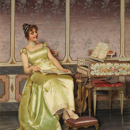 This high quality fine art print by Vittorio Reggianini, entitled The Music Lesson, evokes the complex and vibrant colours of the 19th century. With its realistic brushstrokes and attention to detail, this print is the perfect addition to any wall.