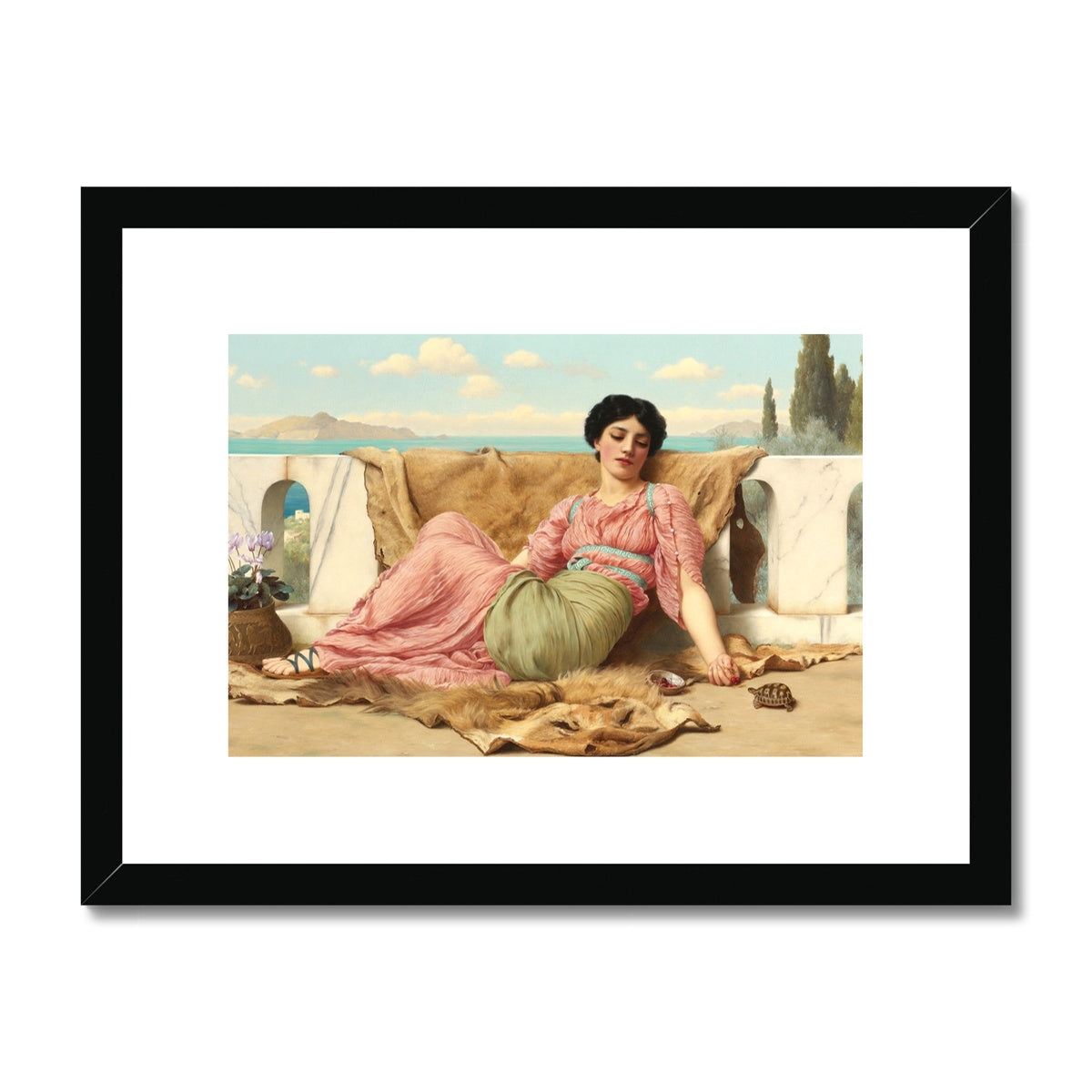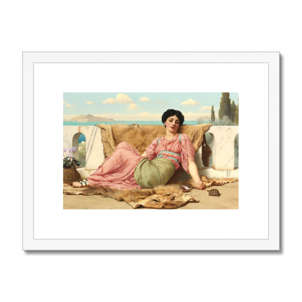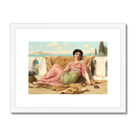 Bring classical elegance to your home with The Quiet Pet by John William Godward. The masterpiece, painted in 1906, is encased in a durable frame, ready to hang on your wall. With its muted colours and realistic details, this framed print will make a timeless statement in your décor.