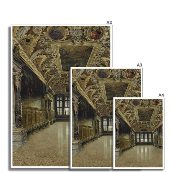 This fine art print depicts a grand view of The Sala delle Quattro Porte within the Doge's Palace in Venice, painted by Josef Theodor Hansen in 1906. Hang this exquisite piece of artwork in your home to showcase the timeless beauty of one of the world's most famous landmarks.