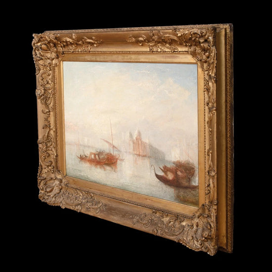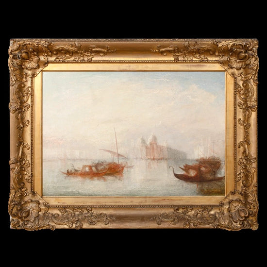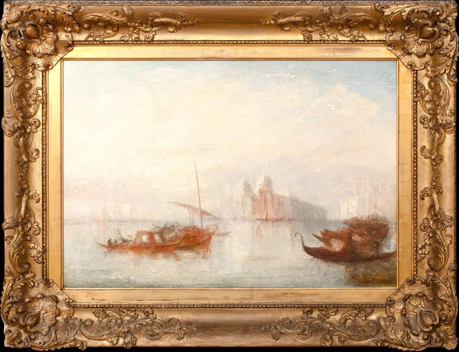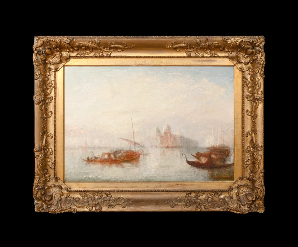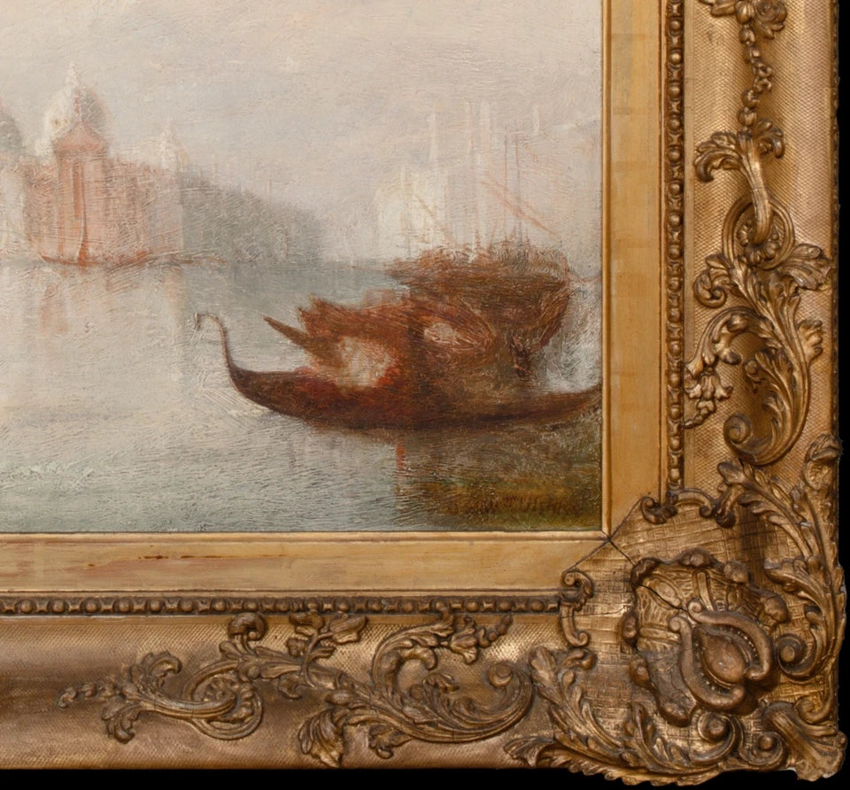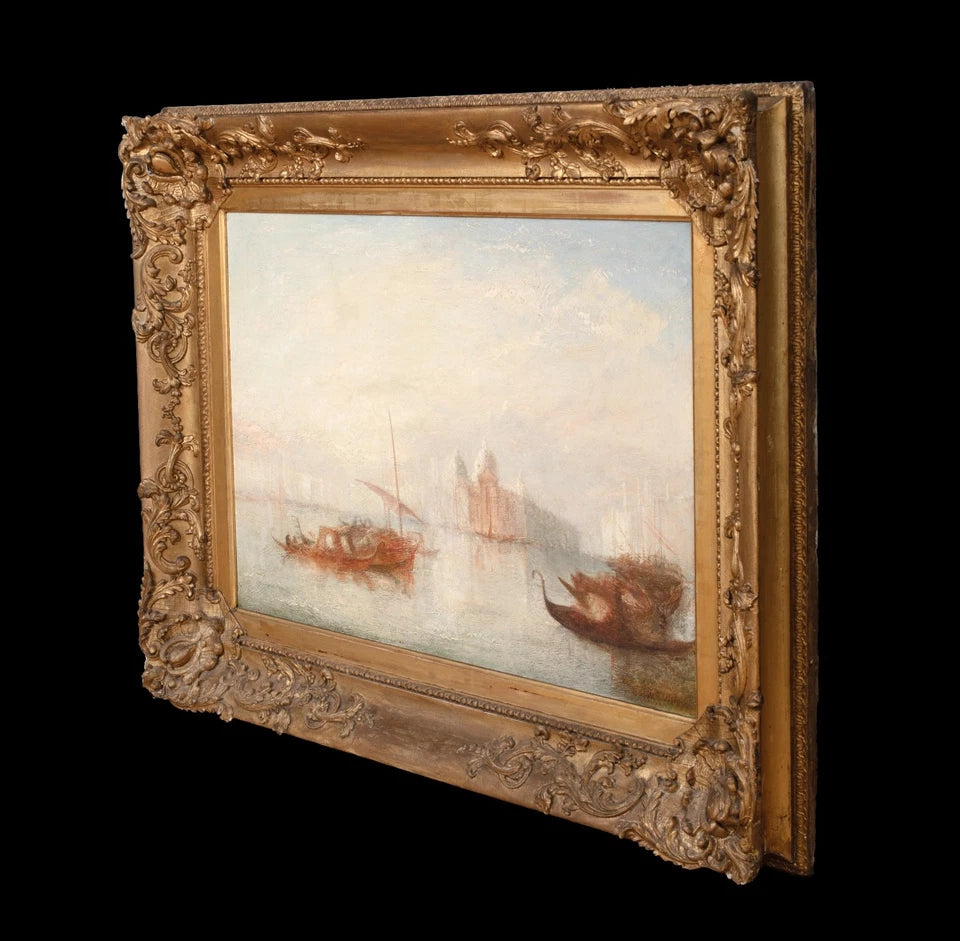 Presented in an impressive hand-crafted gilt gesso frame, the work stands as a compelling example of Turner-influenced Venetian subject matter. With strong provenance and attribution history, it remains an artwork worthy of further scholarly investigation.